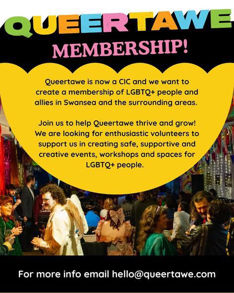 Join Queertawe on Monday 1st of December to find out more about Queertawe’s Membership and how you can get involved!