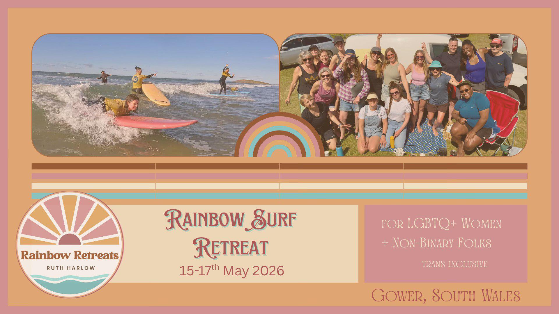 Experience the pure joy of surfing, with a fabulous bunch of LGBTQ+ women & non binary folks, in one of the most beautiful places on earth (not biased at all)!